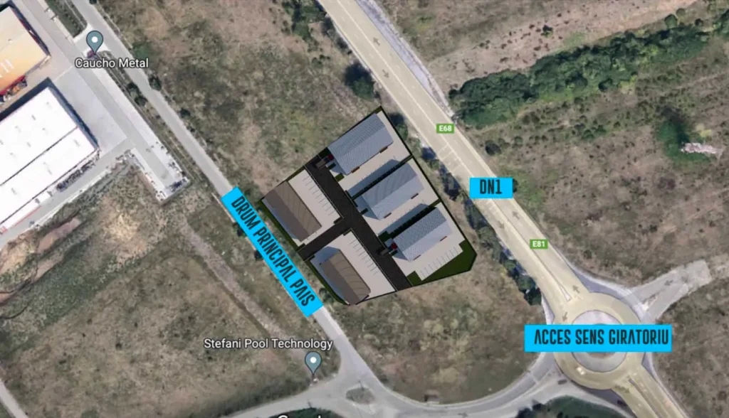 POWER HUB boosted PARCUL INDUSTRIAL SIBIU se axeazã pe constructia a 5 hale metalice industriale moderne, pe un teren de constructie de 6000 mp, aflat la DN1 cu intrare prin drumul complet asfaltat si modernizat al Parcului Industrial.